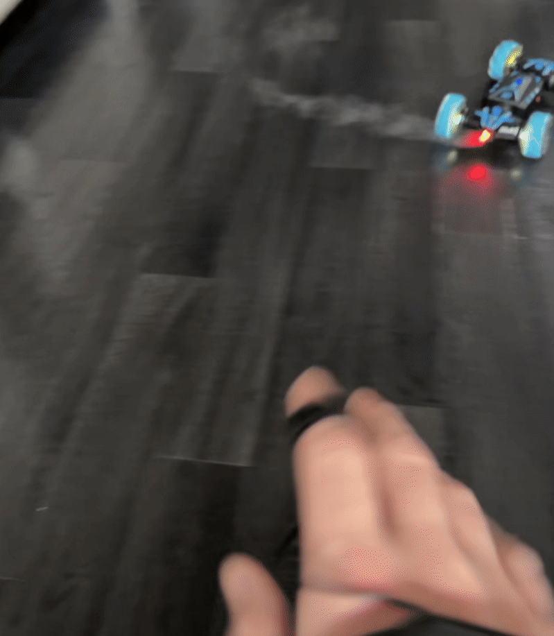 The car includes a smart motion-sensor watch that connects via 2.4 GHz signal. Simply move your hand in different directions to make the car go forward, backward, spin, or flip 360°. It’s intuitive and super fun!